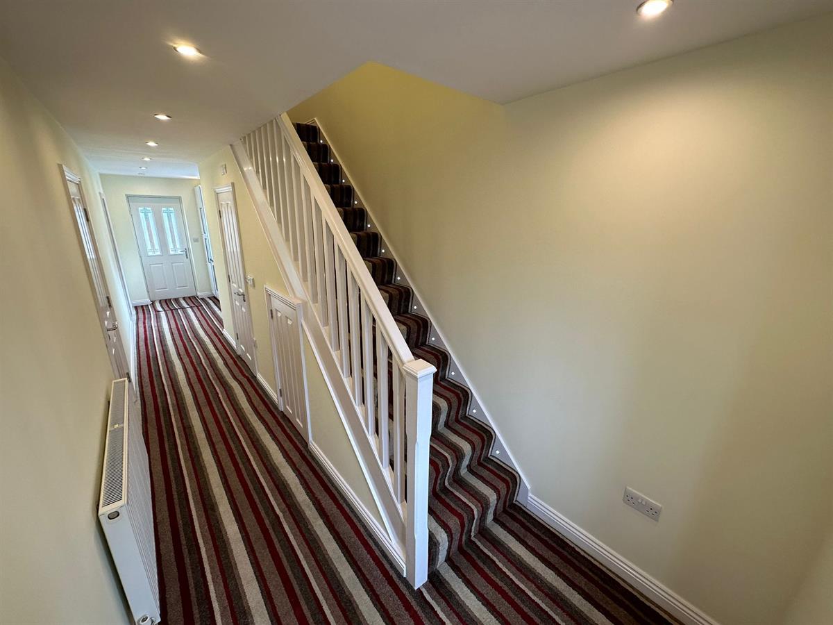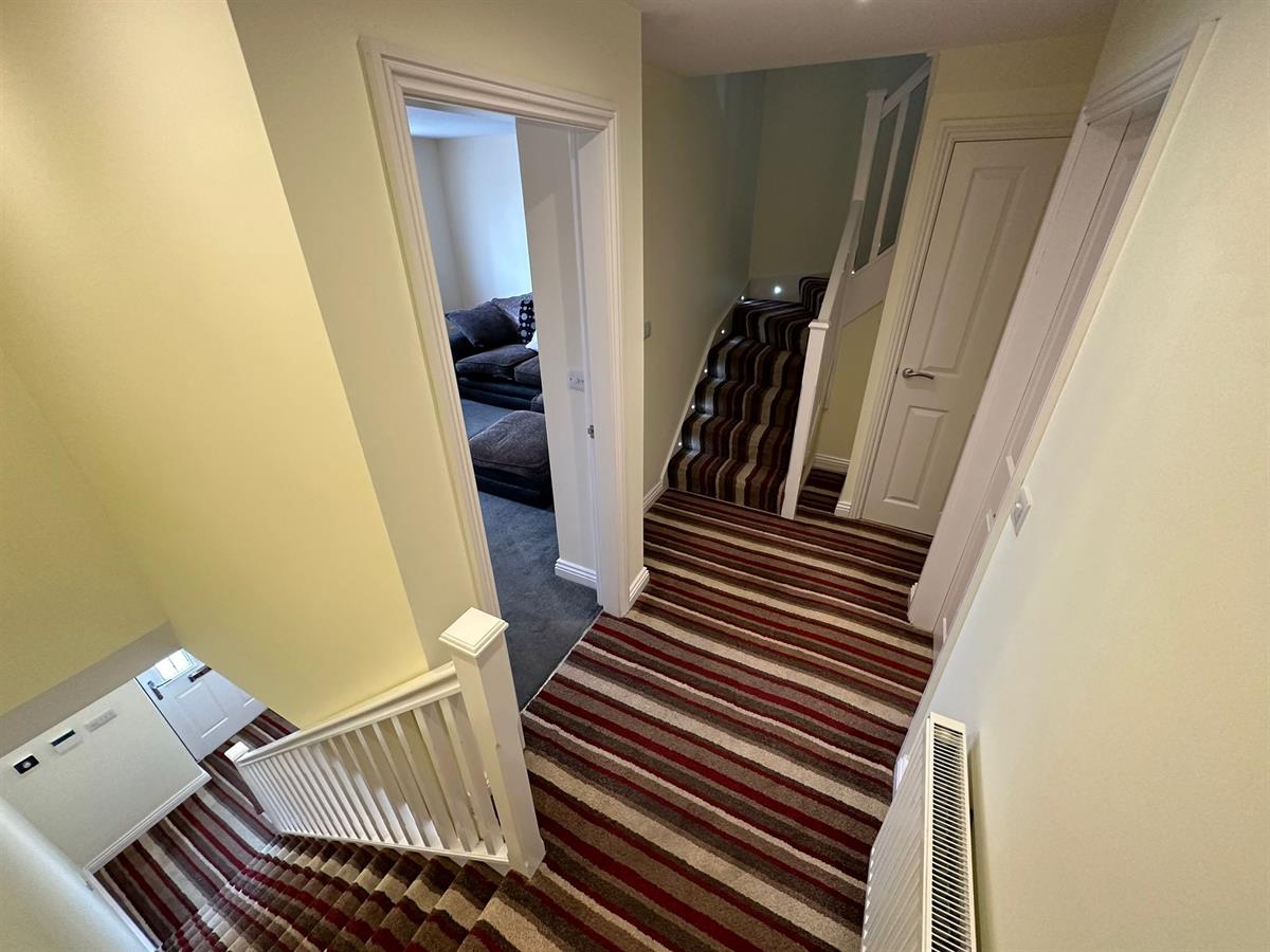 The property boasts a stunning open-plan kitchen and dining area, complete with sleek high-gloss units and feature lighting, creating a perfect social space. The living room offers a cosy yet spacious environment, while the bedrooms are well-proportioned, with the master benefiting from an en-suite.
